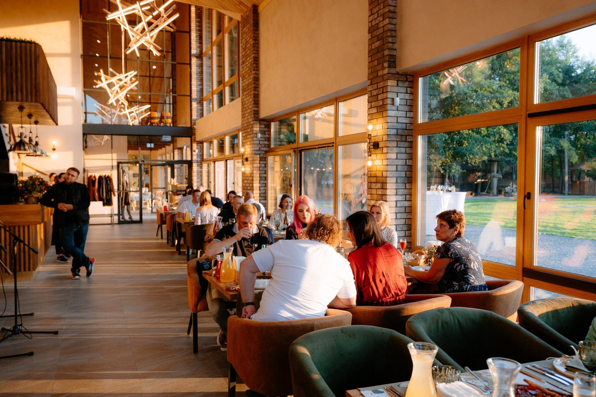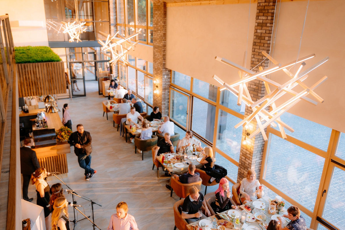 Der Restaurantsaal für über 200 Gäste bietet unbegrenzte Möglichkeiten zur Durchführung von Veranstaltungen für Kinder und Erwachsene, Hochzeiten und deren Jubiläen, Geburtstagen und Jubiläen.